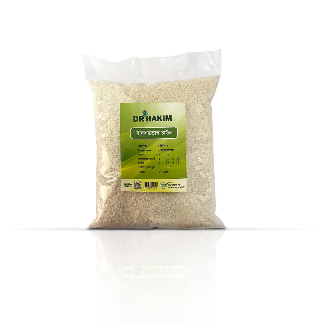 DR. HAKIM বাদশাভোগ চাল সুগন্ধি, চিকন দানার প্রিমিয়াম মানের চাল, যা পোলাও, খিচুড়ি ও বিশেষ রান্নার জন্য আদর্শ।